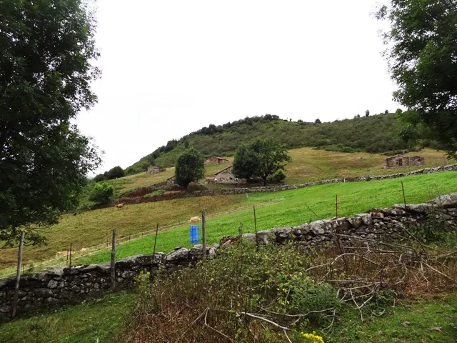 Tras pasar estas cabañas y la fuente de la Casa Vieya, el camino inicia un ligero descenso, hasta entroncar en la collá de Navalloz con una pista que desechamos, debemos de tomar un camino más alto a la dcha que se interna en un bonito bosque