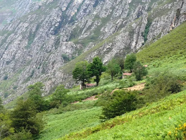 Seguimos por la estrecha valleja que se abre entre la Llomba y el pico Llacíu