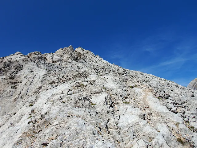 Tras juntarnos al sendero que viene de la Canalona alcanzamos la cumbre tras remontar una dura rampa de 200 m de desnivel