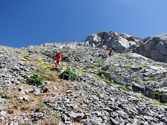 Salvado el primer resalte seguimos ascendiendo con cuidado de no tirar piedras a los que vienen por detrás